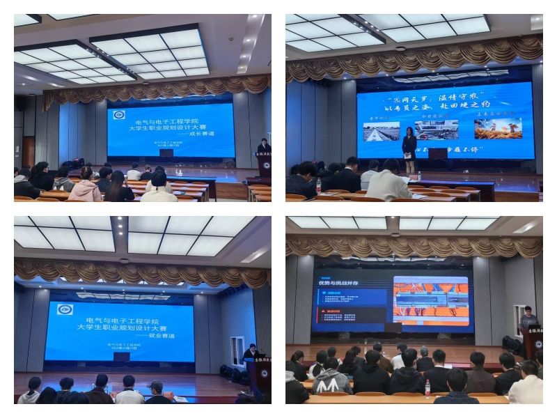 参赛选手们围绕自己的专业特色和个人兴趣,通过PPT演讲、视频展示等多种形式,生动展现了对未来职业的构想与规划。从科技创新到文化艺术,从医疗健康到金融服务,每一个项目都充满了创意与激情。经过激烈角逐,建筑电气与智能化专业罗文均同学凭借贴合专业、规划详尽,表现出色,脱颖而出斩获本届大赛特等奖,电子信息工程专业曹郡、杨晓雅同学荣获一等奖。